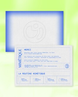 Art direction and global brand identity for the new french cosmetic brand, Mimétique. Deeply inspired by the principles of biomimetics, the brand offers efficient products that replicate the skin’s natural processes to enhance its health and vitality instead of overstimulating it.